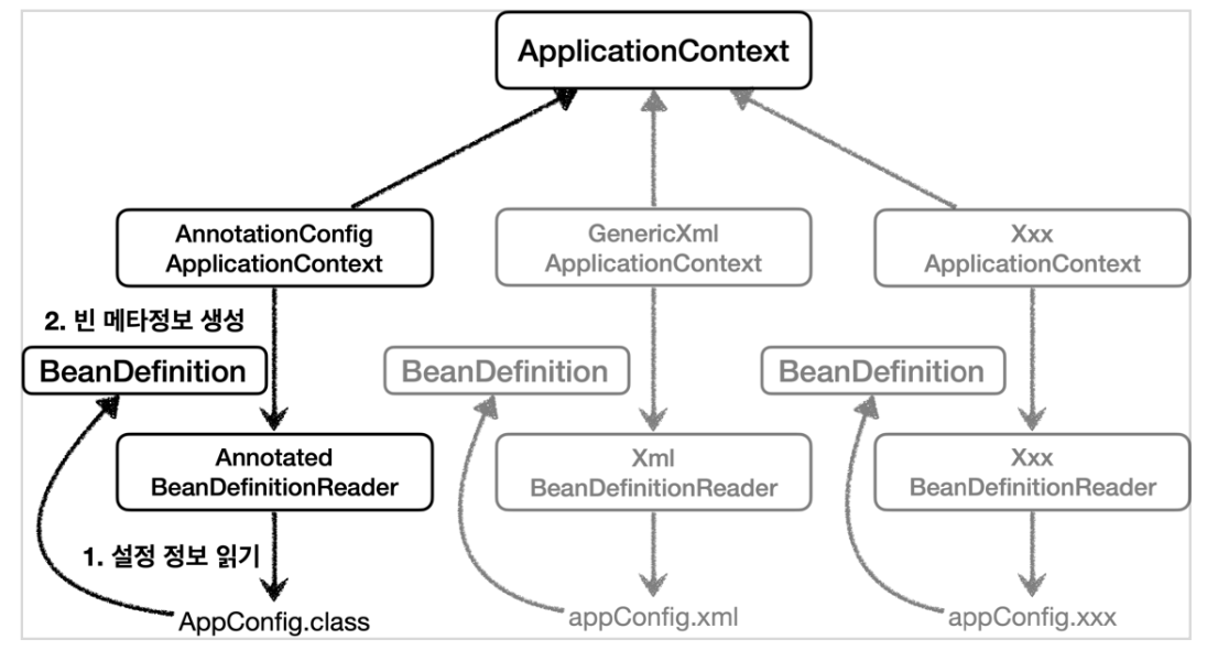 AppConfig.java (xml 파일로 하기도 한다.)