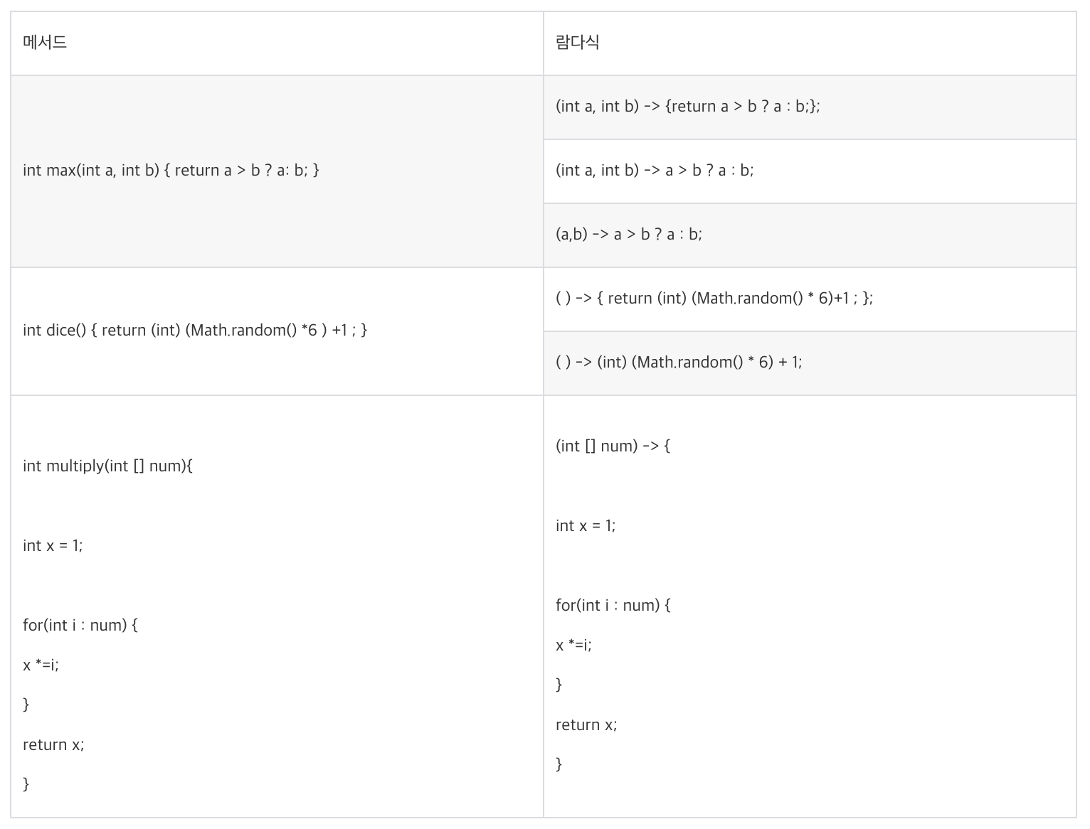 이제 몇가지 예시를 통해, 람다식 문법을 파악해보자.