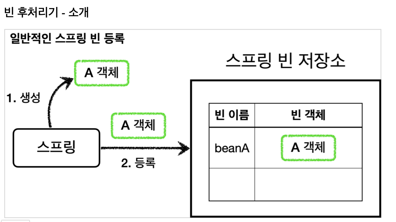 빈 포스트 프로세서( BeanPostProcessor )는 번역하면 빈 후처리기인데, 이름 그대로 빈을 생성한 후에 무언가를 처리하는 용도로 사용한다.