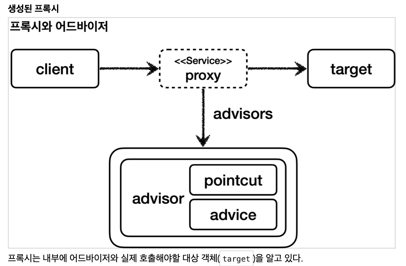(굳이 advisor, AOP가 추가된다고 1대1 매칭으로 프록시가 같이 늘어날 필요 없이 하나의 프록시에서 다수의 advisor, AOP를 관리할 수 있다.)