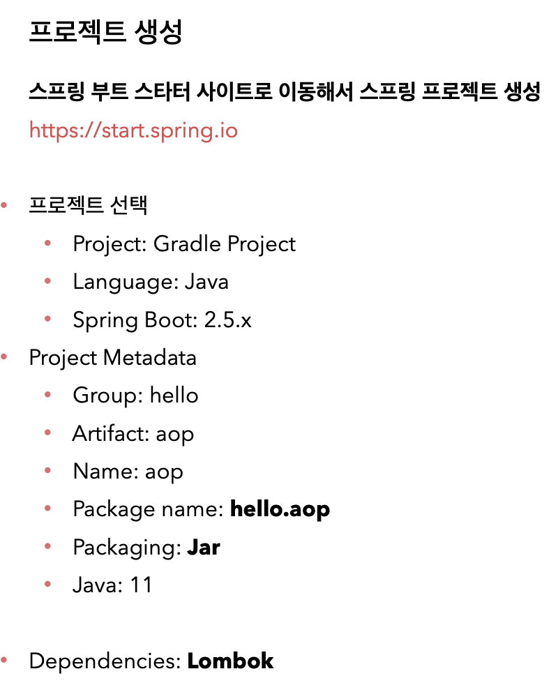 - 스프링 AOP는 AspectJ의 문법을 차용하고, 프록시 방식의 AOP를 제공한다. AspectJ를 직접 사용하는 것이 아니다.