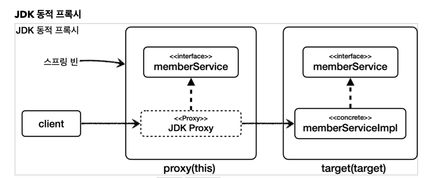 - JDK 동적 프록시: 인터페이스가 필수이고, 인터페이스를 구현한 프록시 객체를 생성한다.