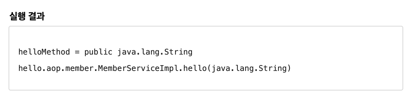 printMethod() 테스트는 MemberServiceImpl.hello(String) 메서드의 정보를 출력해준다.