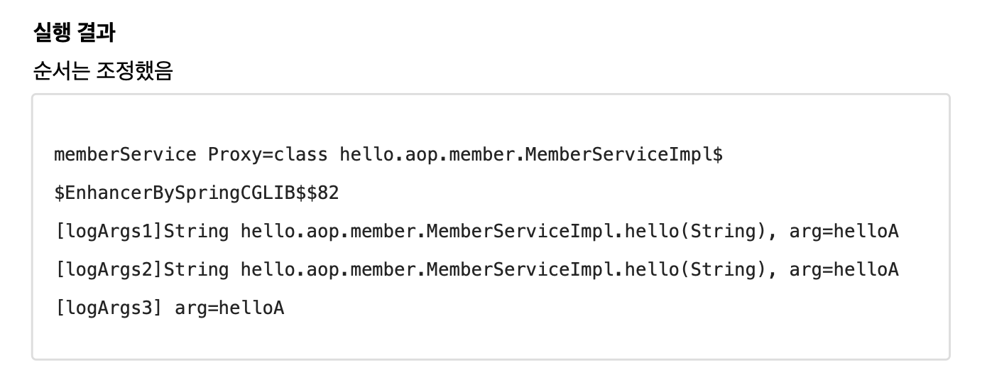 //public java.lang.String hello.aop.member.MemberServiceImpl.hello(java.lang.String)는 BeforeEach에서 수행