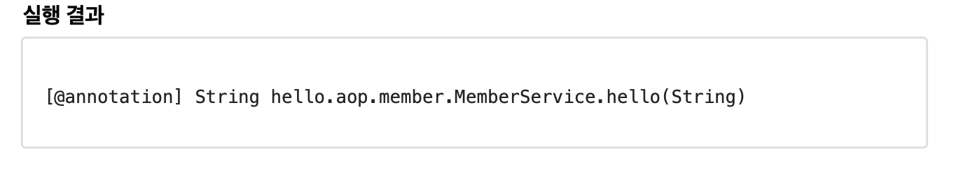pointcut.setExpression("execution(public String hello.aop.member.MemberServiceImpl.hello(String))");