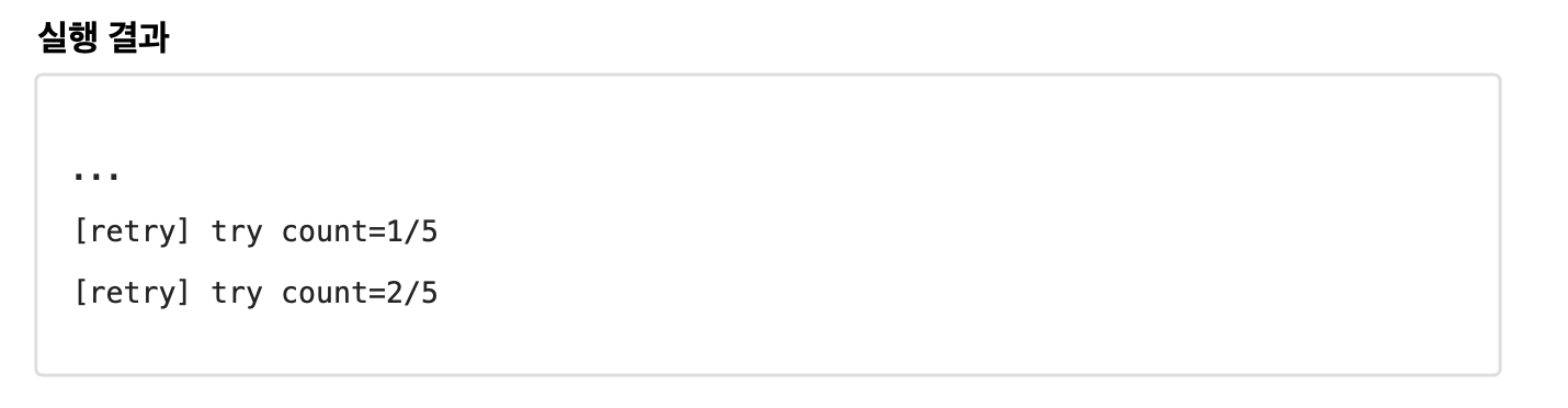 구성한 Repository는 5회째에서 문제가 발생하게 된다. 만약 문제가 발생하면, 재시도를 수행하고, 그 결과 다음 시도에 성공하게 된다.