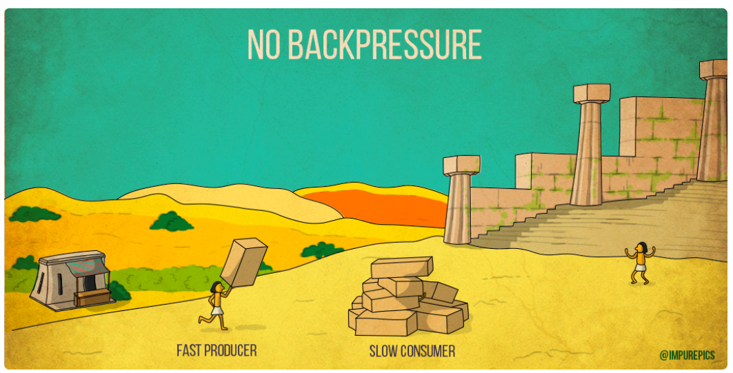 데이터의 Consumer는 자신이 감당하지 못하는 속도로 생산되는 데이터의 속도를 감당하지 못하는 문제가 발생하게 된다.