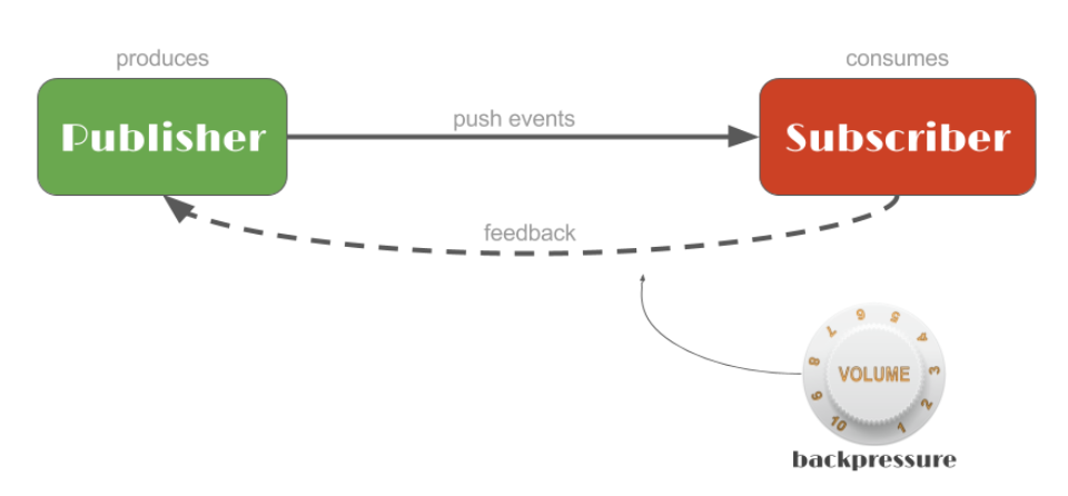 이후 Subscriber는 Publisher에게 피드백을 주는데, 이는 혼잡을 제어할 수 있는 도구로 "모든 이벤트를 다 push하지 말고, N개만 보내줘"와 같은 요구에 해당한다.