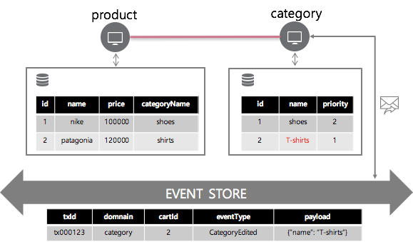 이처럼 서비스간 데이터 반정규화가 발생할 때, 해당 반정규화 동작에 대한 이벤트를 통해 서비스 간 데이터 동기 처리를 수행할 수 있다.