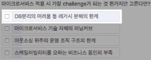 - 서비스 간 분산 트랜잭션 처리 및 중간에 오류가 발생했을 때 복원 시점, 복원 키 값을 찾는 등에 어려움이 있다.