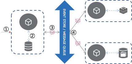 - 서비스의 상태 변경 → 이벤트 발생 → 이벤트 버스(브로커)를 통해 전파 → 관심있는 서비스에서 구독 → 반복 …
