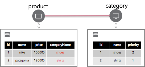 - product의 Database에 category의 데이터 categoryName 반정규화