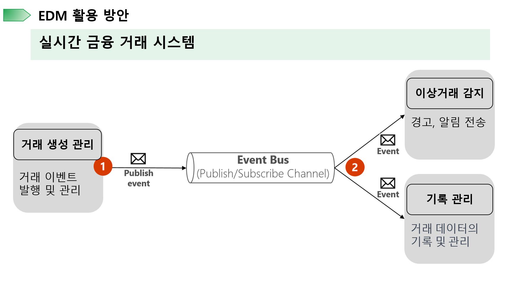 EDM 아키텍처를 사용하여 효율적인 실시간 거래 시스템을 구성할 수 있습니다.