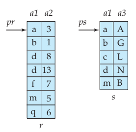 pr과 ps가 가르키는 값이 같다면 (equal), 두 튜플을 join하고, 만약 다르다면, pr,ps의 값을 비교한다.만약 pr이 더크다면 ps의 포인터를 1증가 시키고, ps가 더 크다면 pr의 포인터를 1 증가 시키면 된다.