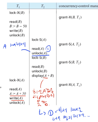Lock 보유 x 시 D에 대한 모든 X-lock이 해제 될 때까지 대기 >> lock-S 걸고 read(D)
