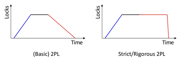 Rigorous 2PL: transaction이 commit or abort 될 때까지 모든 lock을 놓지 않는다.