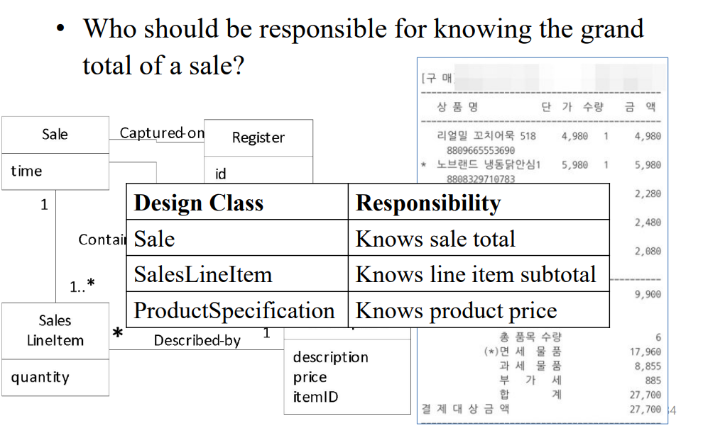시스템 operation과 event를 담당하는 object를 찾아야 한다. => object에 responsibility 부여