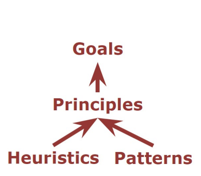 - Design principle(low coupling, high cohesion, high correspondence,…)은 위의 quality를 충족시키는 가이드라인이 된다.