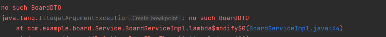 만약 존재하지 않는 객체>> IllegalArg 에러로( dto argu에 문제> 적절히 classify해서 설정하자)