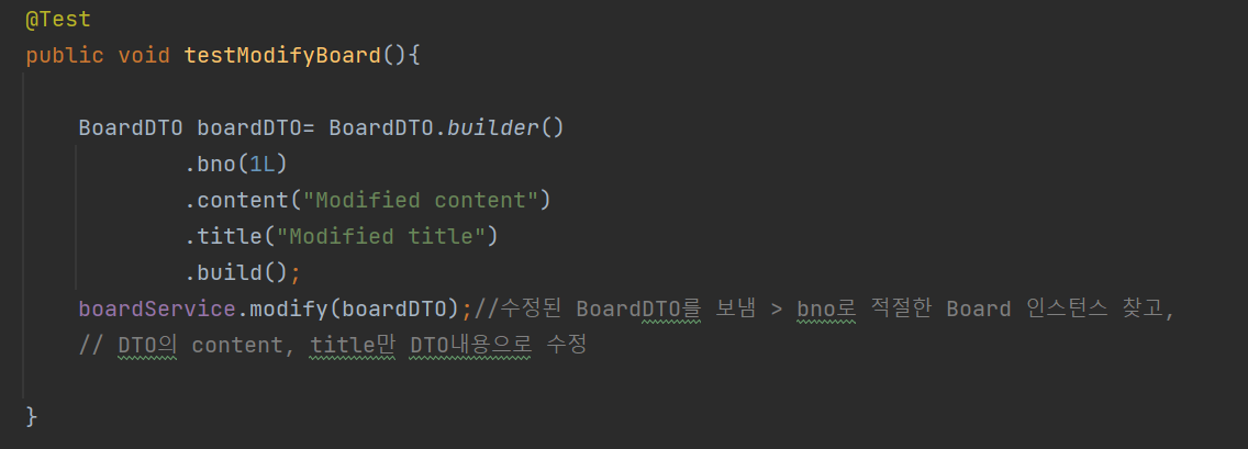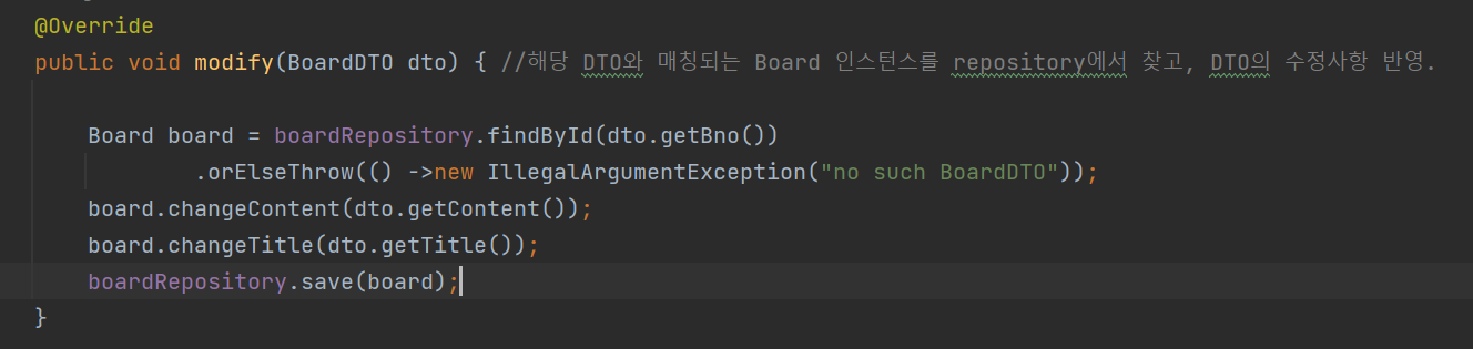 Board: content, title만 수정가능, 나머진 불가능!!! 따라서 애초에 change메소드도 title, content에 대하여 각각 만든다. + DTO 전체를 받아서, 수정할 때는 변경될 수 있는 내용만 수정!