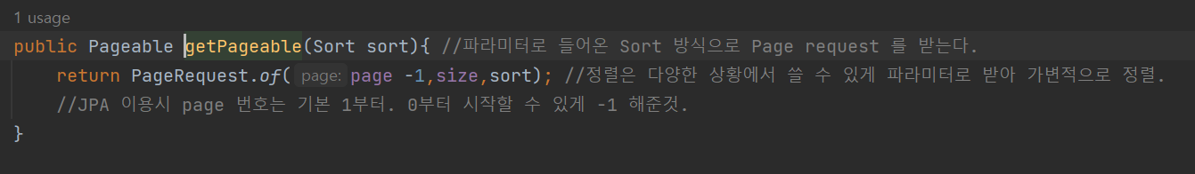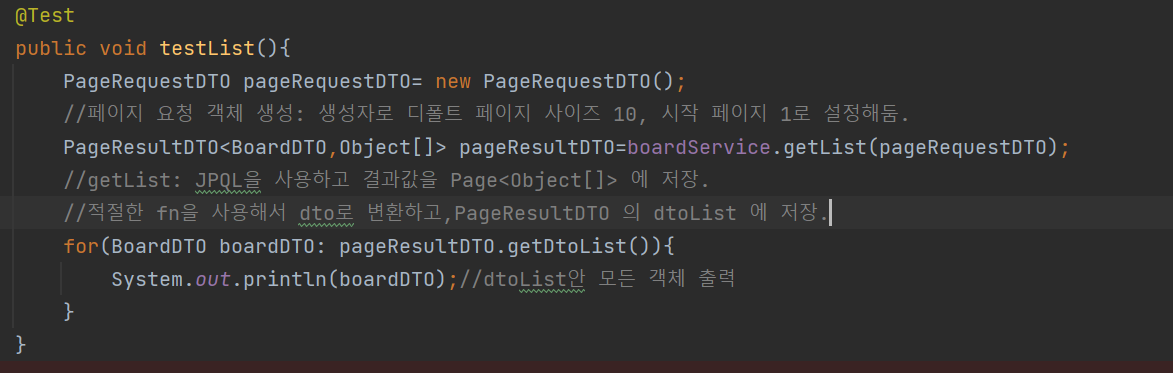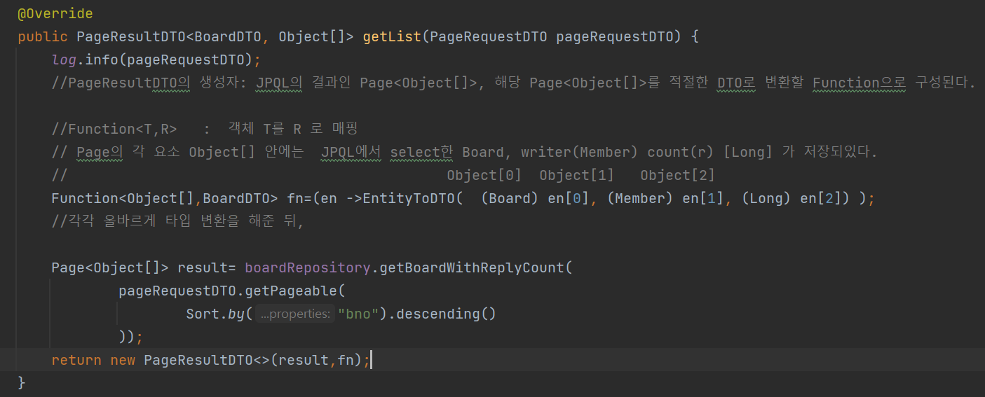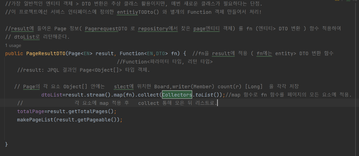 이후 각 Service 계층에서 적절하게 사용하면된다. ( PageResultDTO의 생성자에 파라미터로