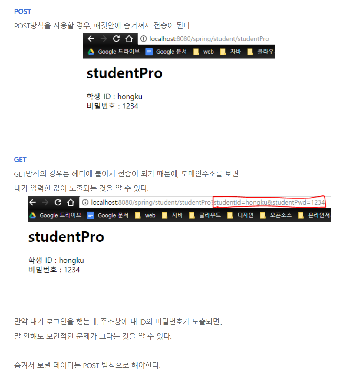 Post: RedirectAttribute로. url에 정보 숨겨져서( body에) 전달됨.