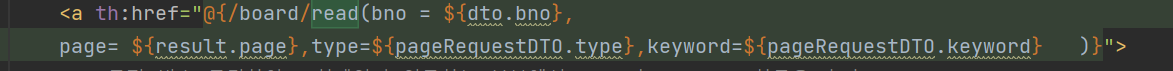 사용자가 읽을 게시물 클릭시 url에 해당 게시물의 bno, 해당 게시물이 위치한 page 정보,
