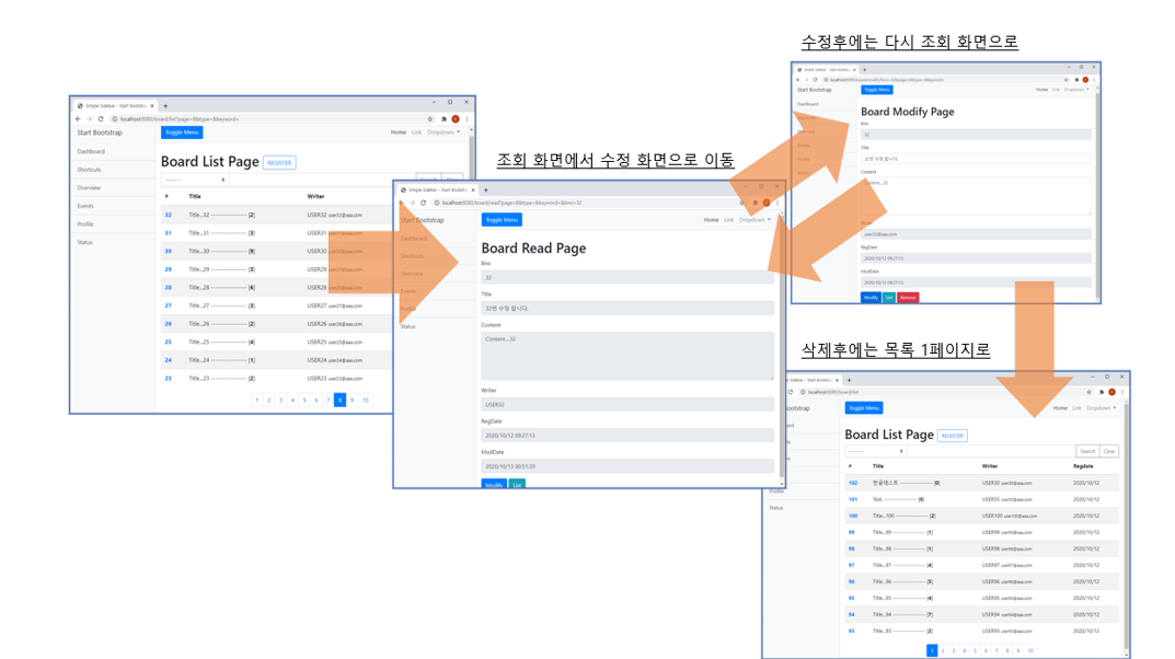 Get방식으로 url의 bno정보를 추출해 적절한 boardDTO를 찾아 올바른 수정 페이지를 렌더링하고,