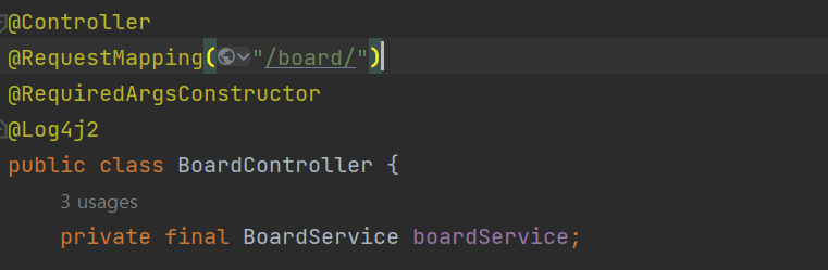/board url을 처리하는 컨트롤러임을 알려준다.
