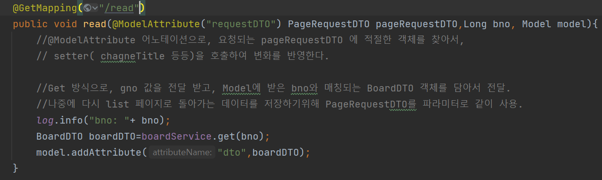 정보를 addAttribute 방식으로 넣어준 뒤, read.html에 전달해야 원래의 게시물로 돌아올 수 있다.