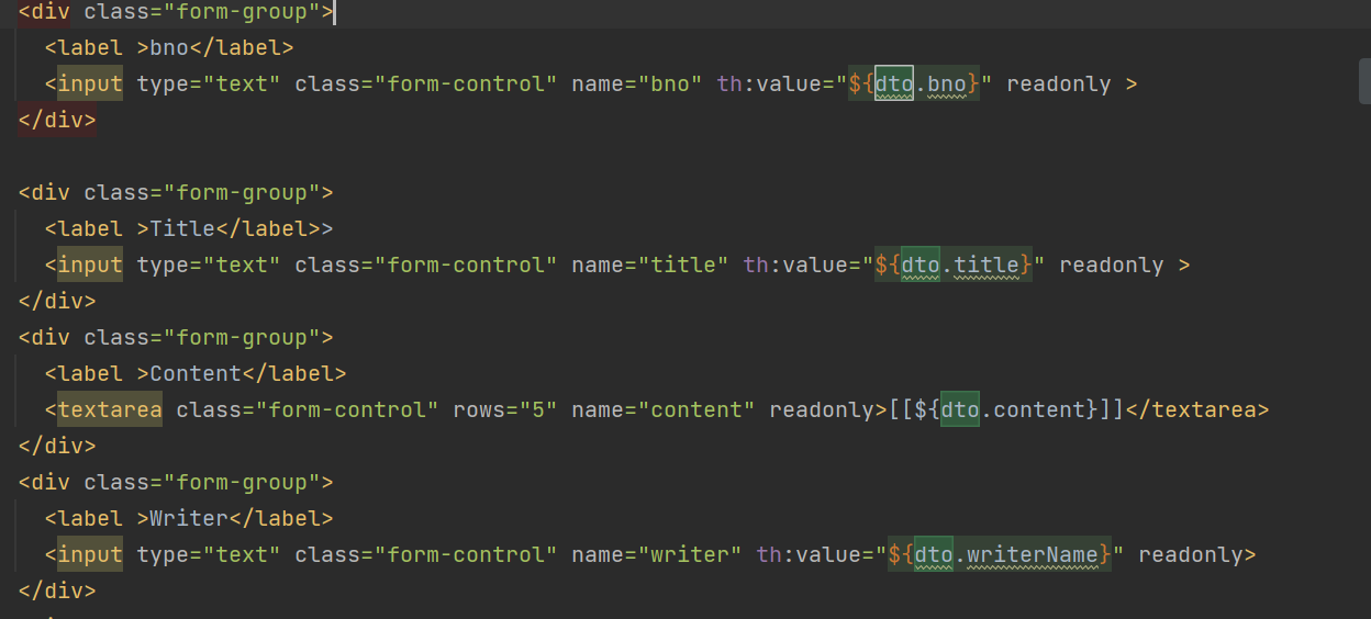 .get(bno) 메소드를 통해 적절한 boardDTO 객체를 찾아서 read.html에 “dto”라는 이름으로 전달한다.
