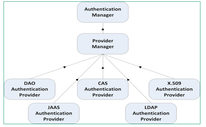 인증 매니저는 데이터베이스를 통한 인증, 메모리상 데이터를 통한 인증 등 다양한 처리 방법을 이용한다.