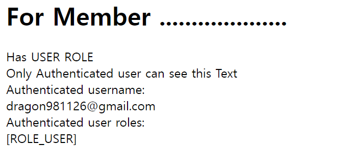 View 영역도 마찬가지로, OAuth를 통한 로그인 정보가 올바르게 DTO에 호환되며 제대로 정보가 나타난다.