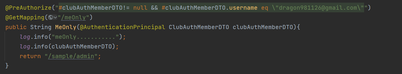 이메일이 내 이메일과 같아야만, Mapping이 수행되게 구현한 컨트롤러이다.