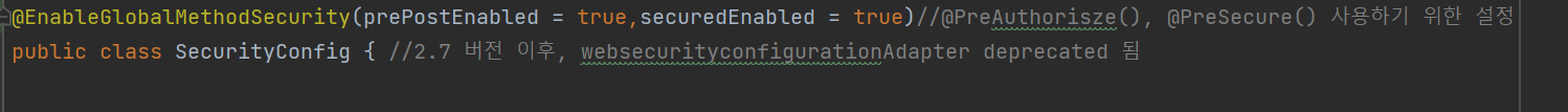 기존에는 이런식으로 권한처리를 진행했지만, @EnableGlobalMethodSecurity 어노테이션을 사용하면
