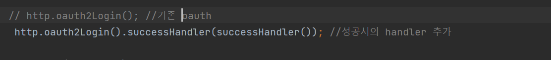 그리고 기존 OAuth 로그인 설정에서 successHandler를 추가한다.