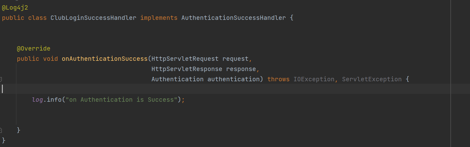 log에 적은 문장이 출력되어 로그인 성공시에 Handler가 올바르게 동작함을 확인할 수 있다.