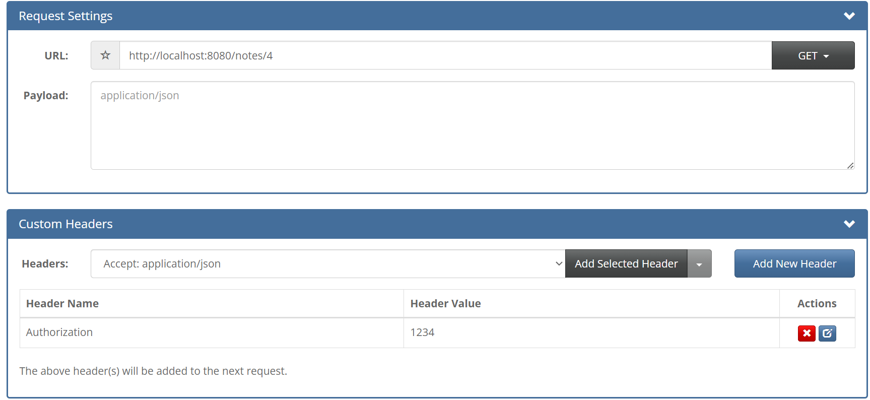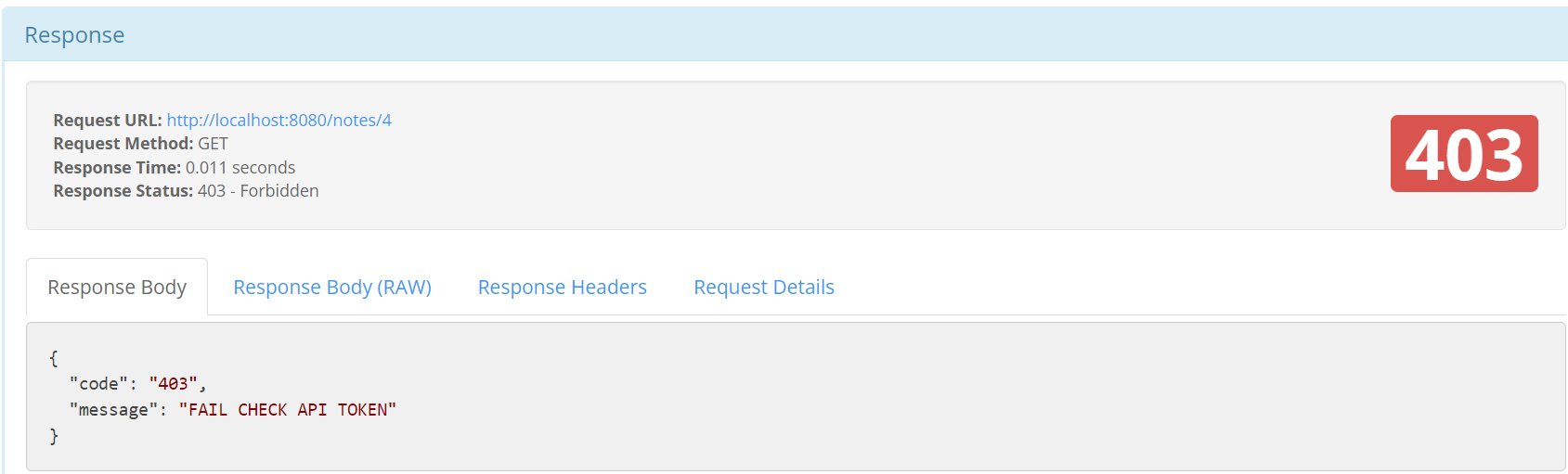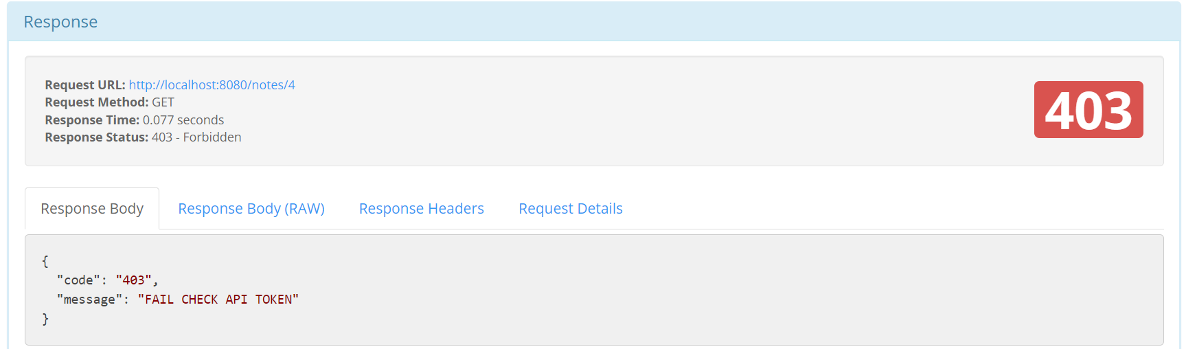 ApiCheckFilter를 통해 "/notes/~" 에 접근 시도시, 인증 헤더가 올바르게 통과하고, 잘못된 인증 정보, 혹은 인증 정보가 없을 시는 접근이 반려되는지 테스트 해보자.