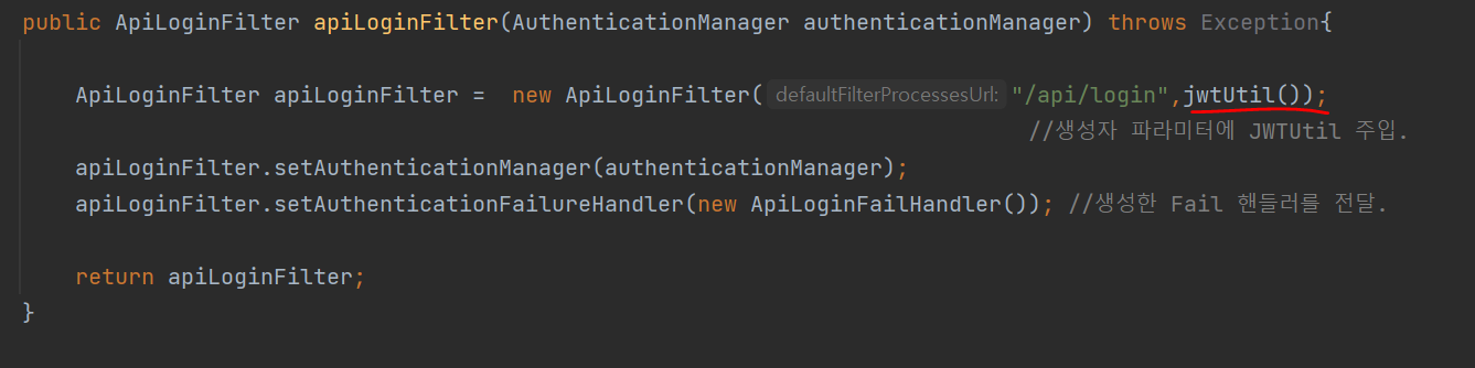 이제 SecurityConfig에 JWTUtil을 추가하자.