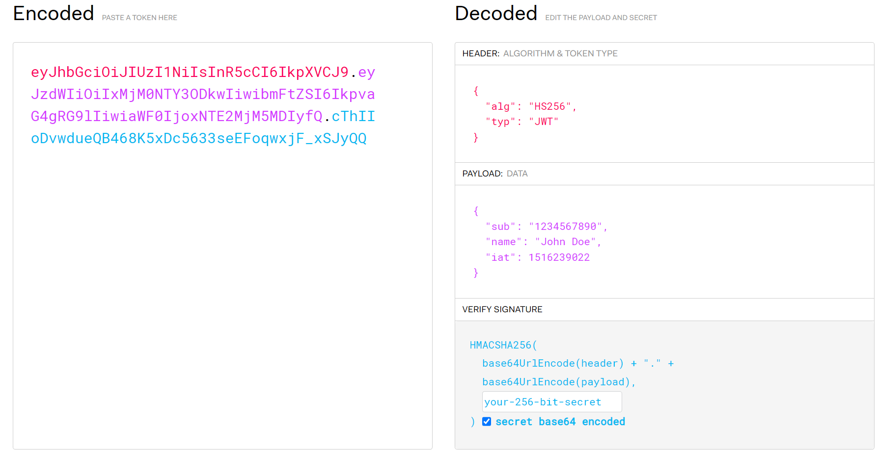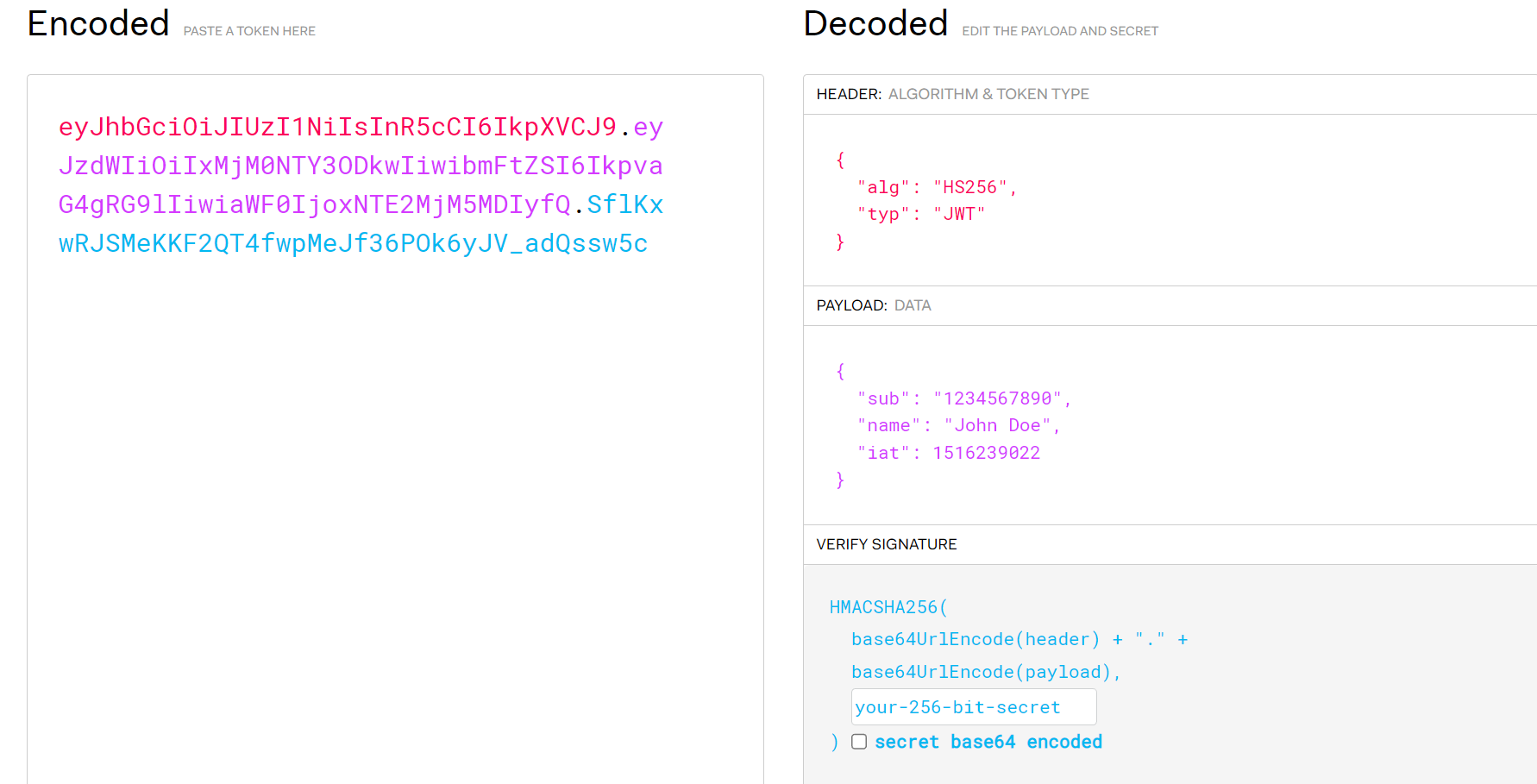 jwt.io를 통해 암호화된 JWT 토큰을 좀 더 자세히 분석해보자.