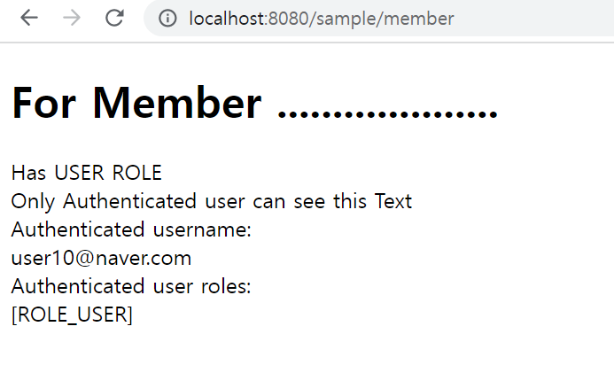 만약 url에 email 이라는 값을 파라미터로 전달하면 아래와 같이 올바르게 진입 가능하다.