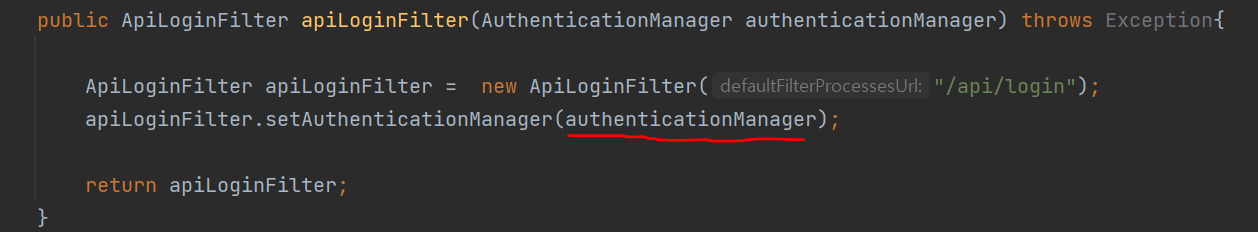 이제 Config 파일에서 AbstractAuthenticationProcessingFilter를 사용하기 위해선 authenticationManager가 필요한데,