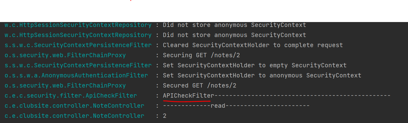 여기까지, "/notes/~~" 에 대해 동작하는 Filter에 대해 작성하였다.