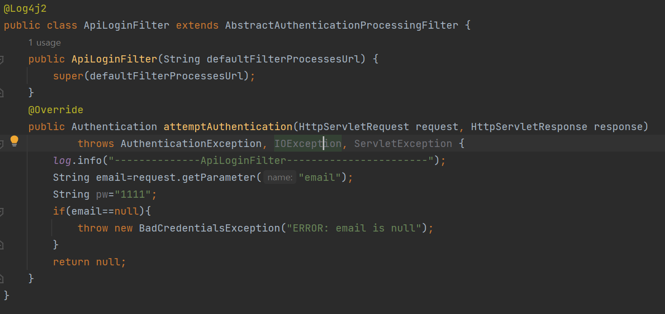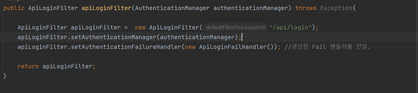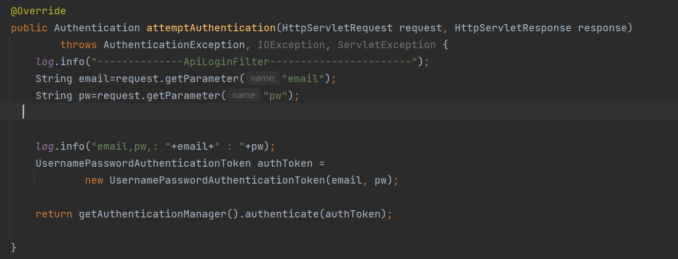 이제 로그인 처리를 수행하는 ApiLoginFilter로 다시 돌아가서 올바르게 동작하도록 수정해보자.
