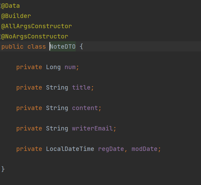 그리고 해당 엔티티를 담을 DTO 객체를 생성한다.