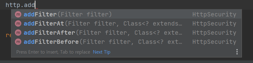 addFilterBefore 외에도, 아래와 같은 메소드들을 통해 생성한 필터의 동작 순서를 수정할 수 있다.