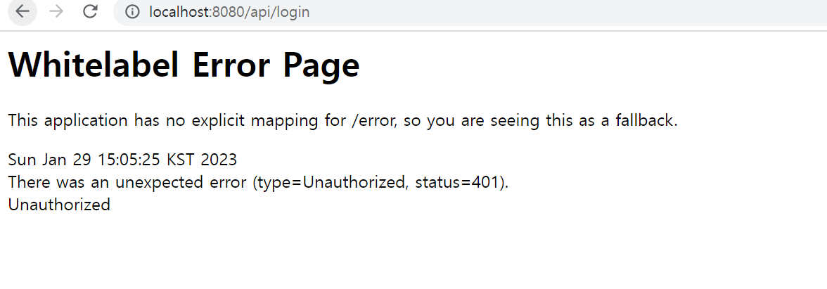 이제 /api/login url에 email 정보 없이 접근해보자.