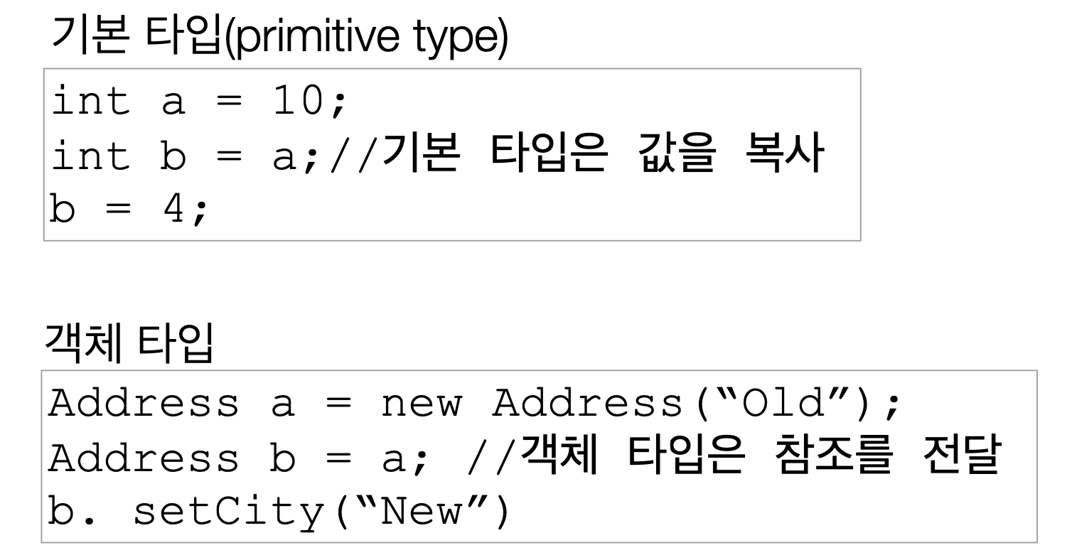값 타입의 실제 인스턴스인 '값' 을 공유하는 것은 위험하기에, 그 대신에 인스턴스를 복사해서 사용한다.