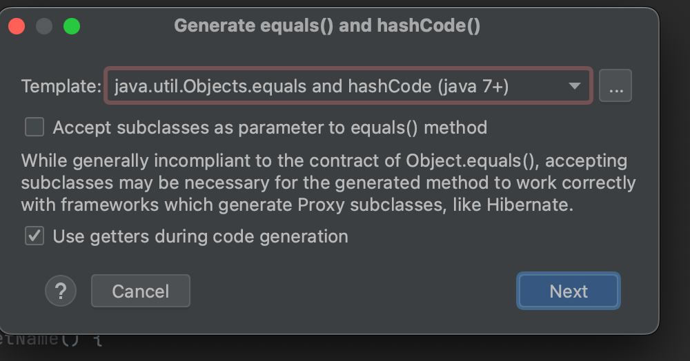 값타입으로써 사용할 엔티티 클래스에서 control+enter 로 equals(),hash() 함수를 선택하여 오버라이딩 후