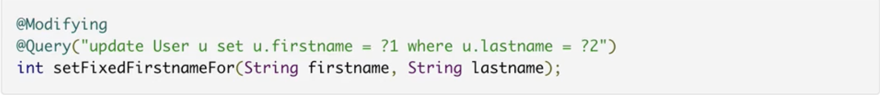 @Query는 named 쿼리를 사용하는 어노테이션. 따라서 "쿼리의 문법오류를 컴파일 타임에서 잡아준다"